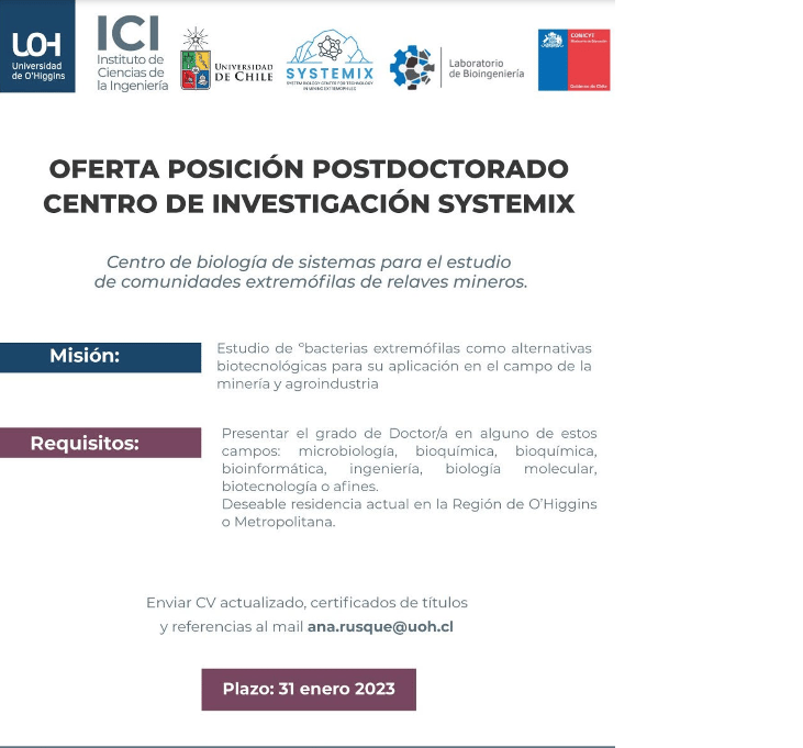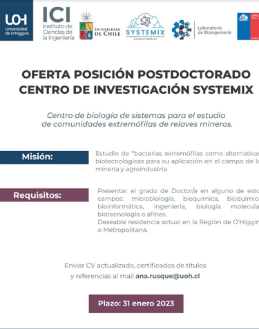 Para más información acerca de la oferta de posición de nuestro postdoctorado puedes contactarte con nosotros a nuestro email.